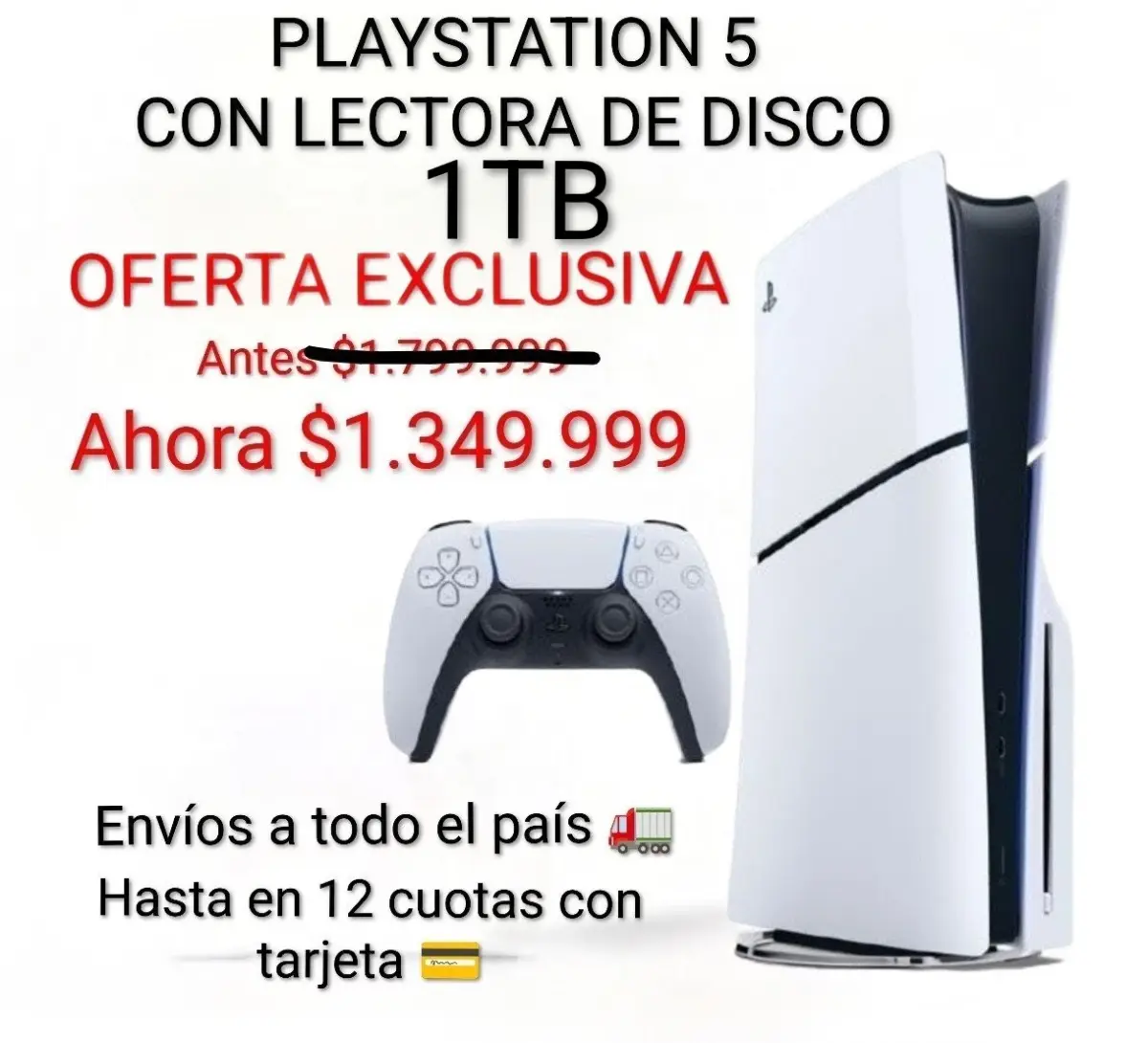 Modelo: PlayStation 5 Standard Edition (con lector de discos). Almacenamiento: SSD ultrarrápido de 1 TB.