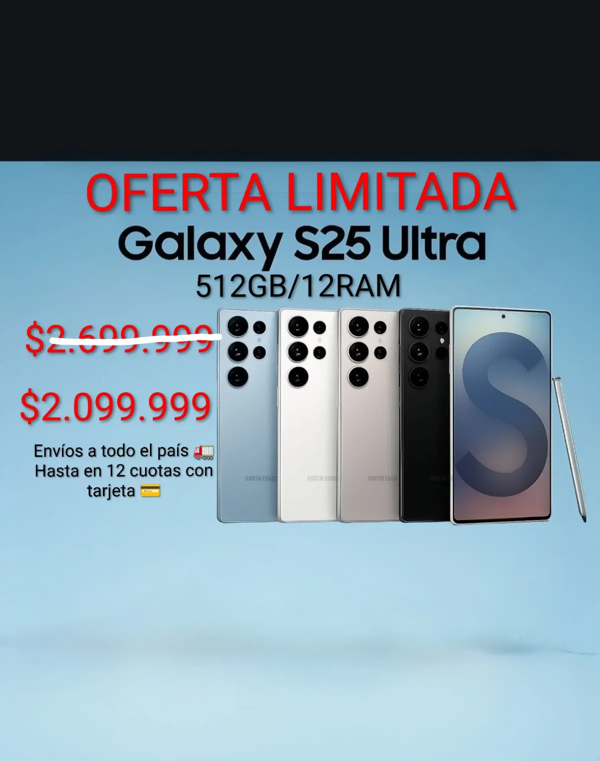 El Galaxy S25 Ultra combina rendimiento de última generación con un diseño sofisticado en colores Gris y Azul. Equipado con 12 GB de RAM y 512 GB de memoria interna, ofrece fluidez total incluso en multitarea intensiva. Su pantalla AMOLED QHD+ de 6.9” con tasa de refresco adaptativa lleva la experiencia visual a otro nivel. Además, su nuevo procesador Snapdragon de próxima generación integra mejoras en IA, optimizando fotografía, batería y desempeño en juegos. Su sistema de cámaras con zoom avanzado garantiza capturas profesionales en cualquier condición de luz.